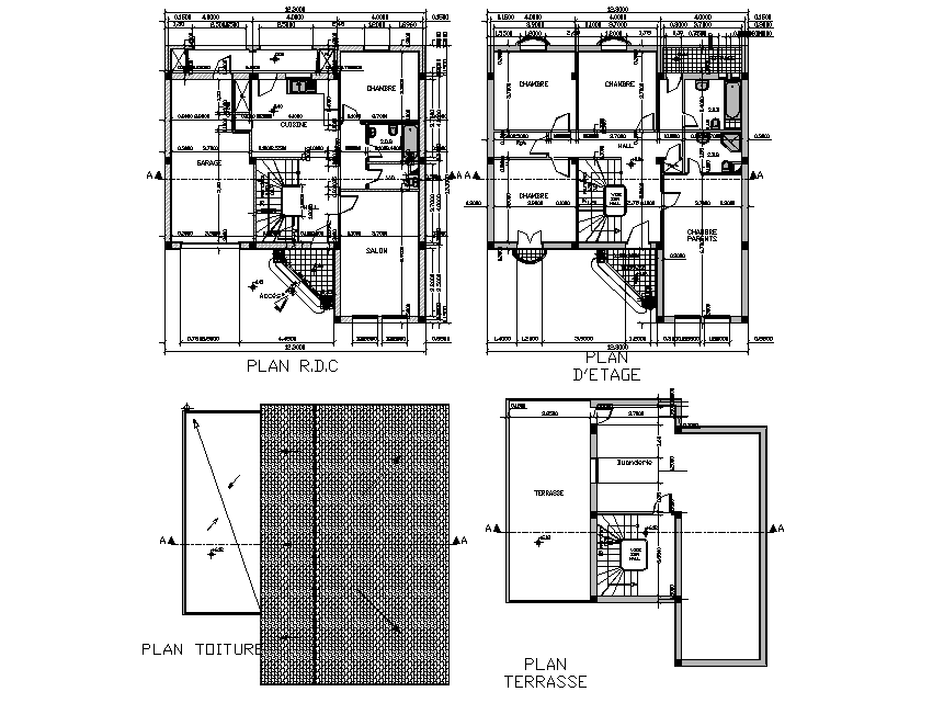 Living place planning detail dwg file, ground floor to terrace floor plan detail, section line detail, dimension detail, naming detail, stair detail, furniture detail in door and window detail, etc.