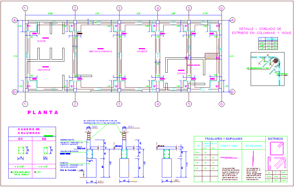 Structural view of first floor plan with detail for office dwg file in plan with view of are distribution with wall view and view of wall with wall support and column view with office area with washing area and column detail view with necessary dimension.
