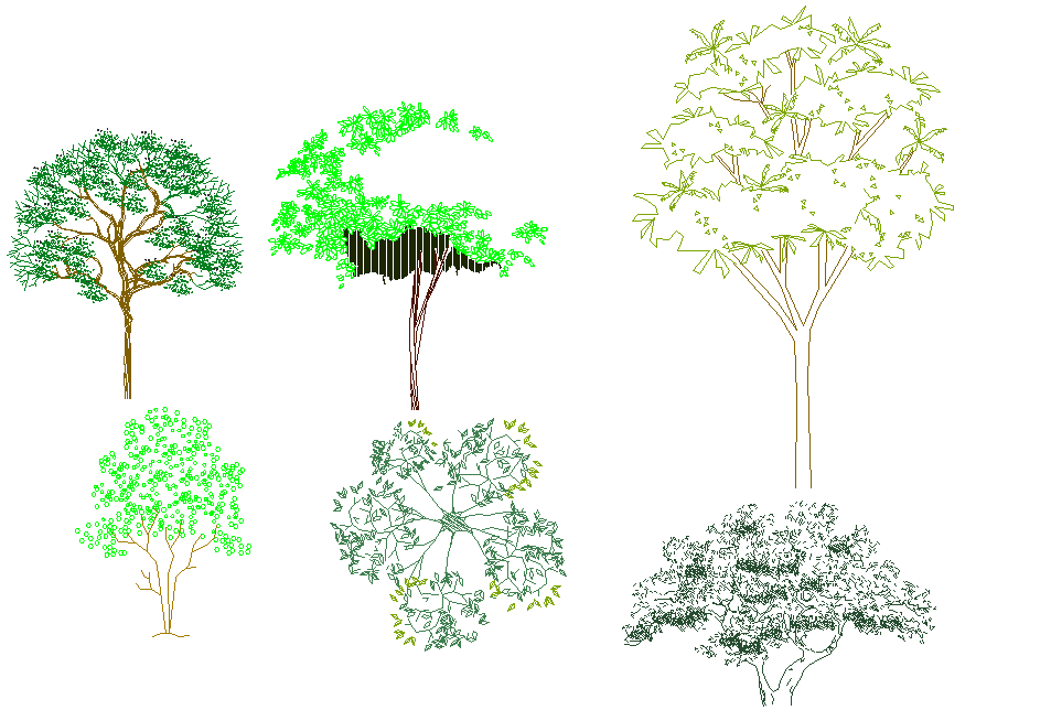 Tree elevation plan autocad file, a woody perennial plant, typically having a single stem or trunk growing to a considerable height and bearing lateral branches at some distance from the ground.