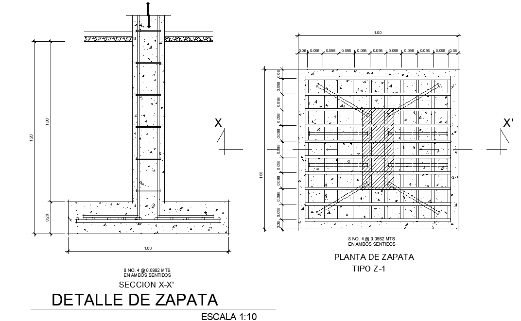 Foundation section plan autocad file, section line detail, dimension detail, naming detail, reinforcement detail, bolt nut detail, scale 1:10 detail, etc.