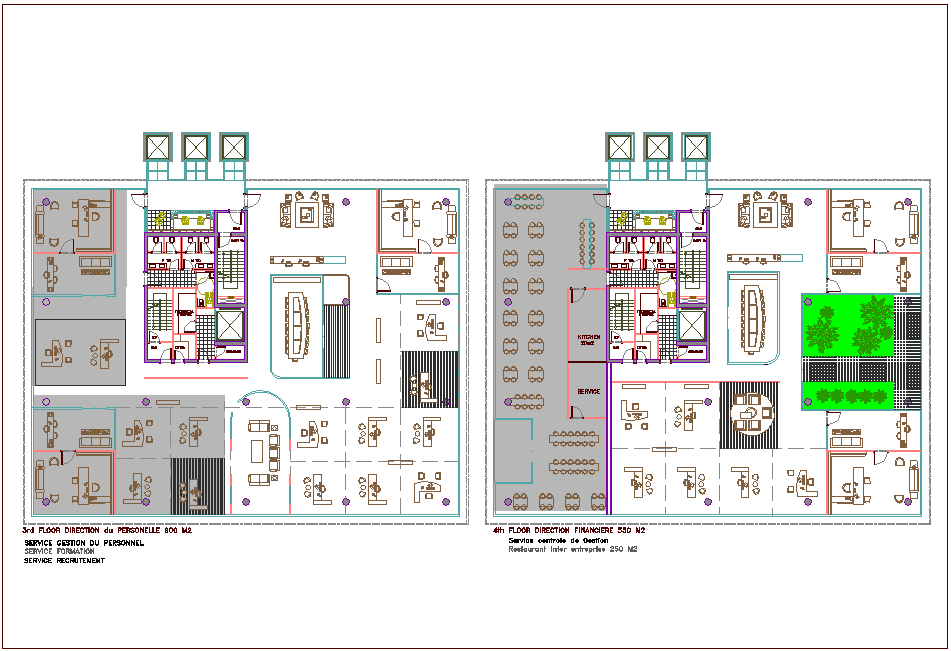 Third and fourth floor plan of bank head quarter with architectural view dwg file