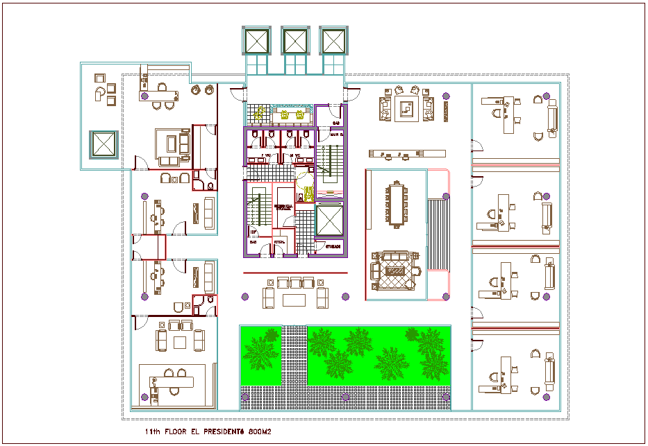 11 floor plan of bank architectural view dwg file in plan with view of area distribution office area with furniture and washing area view in plan.