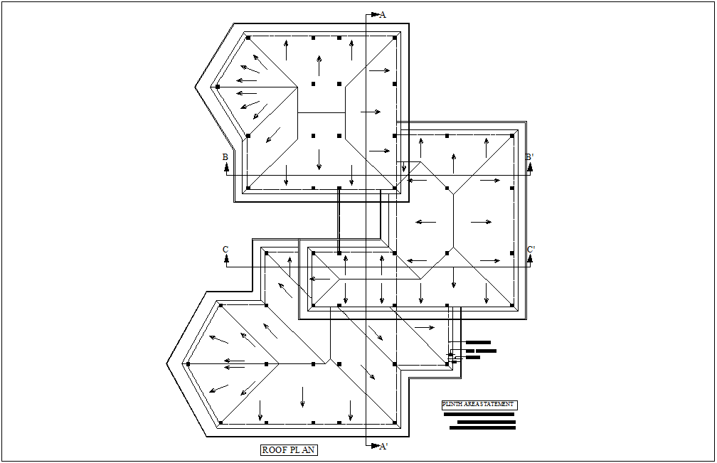 Roof plan with construction view with detail of area for engineer office design dwg file