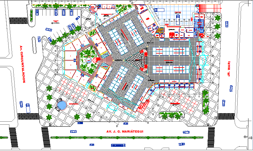 Ground floor layout plan details with landscaping of shopping mall dwg file.