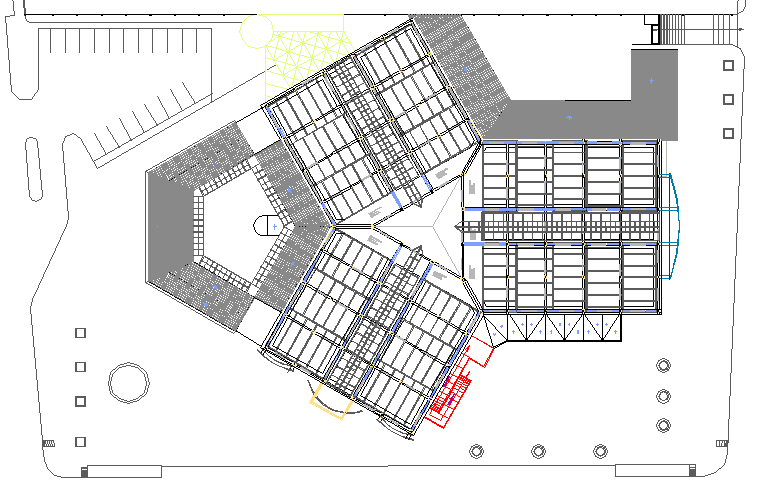 Top view and roof-ceiling details of shopping mall that includes a detailed top view with top ceiling details with ceiling walls, ceiling floors, ceiling dimensions, roof view and much more of ceiling and roof details of shopping mall.