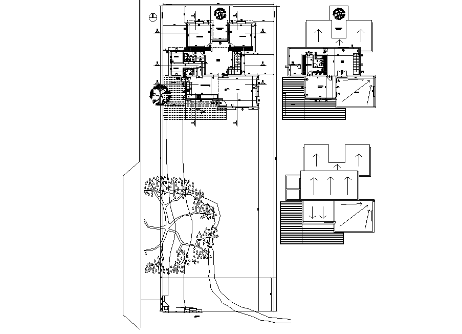 Home plan layout file, section line detail, landscaping detail in tree and plant detail, hatching detail, dimension detail, naming detail, etc.