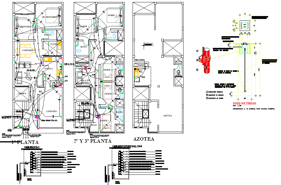 Electrical home plan layout file, circuit detail, furniture detail in door, window, table, chair, sofa, bed and cub board detail, cut out detail, scale 1:25 detail, etc.