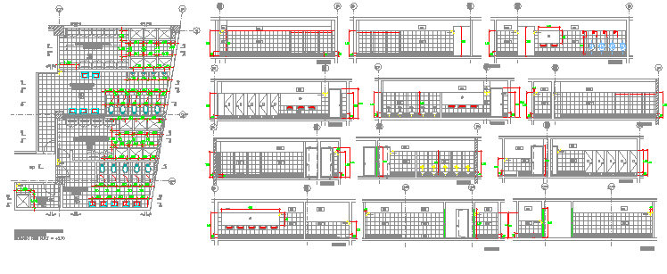 Sectional details with layout plan of city super market dwg file