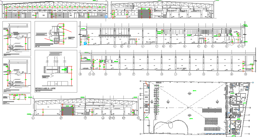 One story city super market architecture project that includes a detailed view of main elevation view, sectional view, doors and windows view, roof view, staircase view, construction view, layout plan details and much more of super market project.