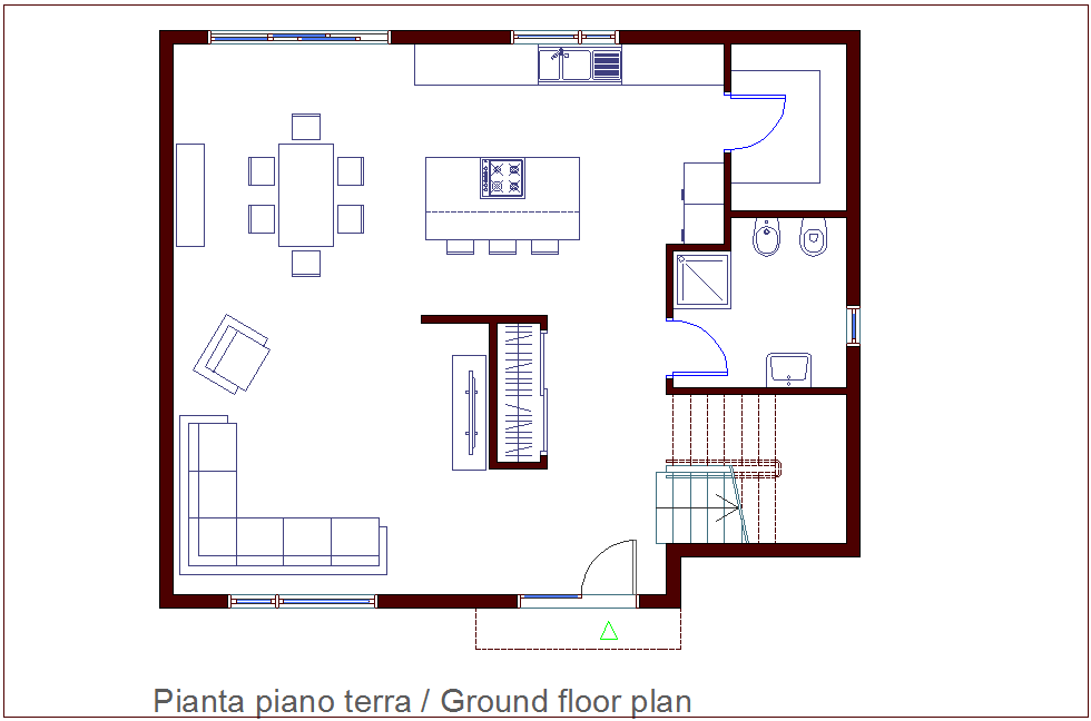 Ground floor plan of housing dwg file in plan with view of area distribution and view of dining area,washing area and kitchen area view,wall view with wall support and view of wall support view