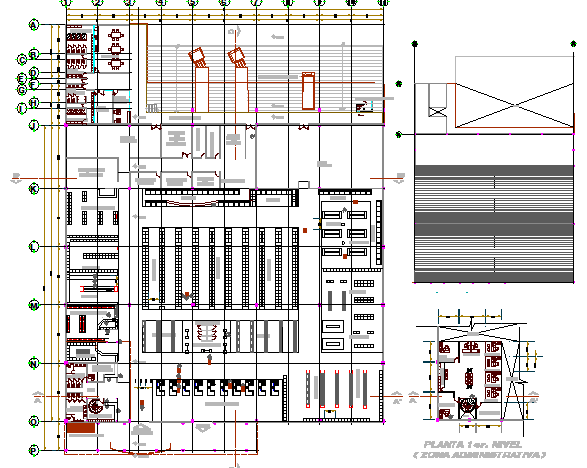 Auto service center architecture layout plan details that includes a detailed view of main entry and exit gate, reception area, outdoor desk area, waiting area, csr area, inquiry desk, service area, billing desk and much more of auto service center project.