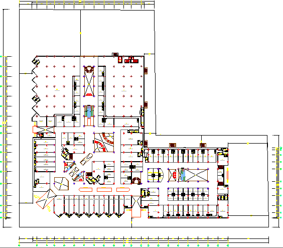 Second floor plan layout details of shopping mall that includes a detailed view of branded showrooms, general hall, passage, balcony, showrooms, shops, corporate offices, fast food stores, mobile shops, fun centers, retail markets, kids play area and much more of floor plan details.