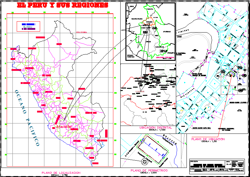 Town Planing Lay-out detail. creation of the community center commercial in the district of vinchos, region san martin,