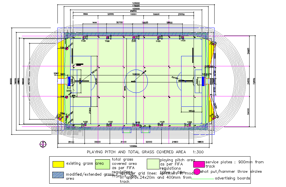 105m x 68m, service plates : 900mm from