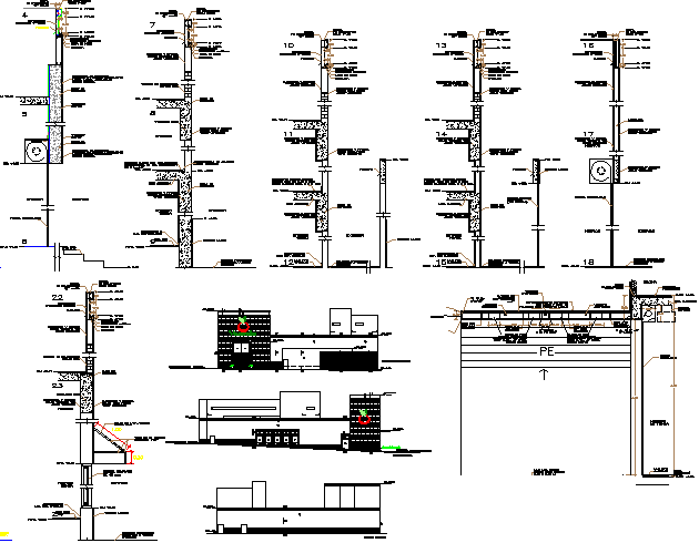 Column construction with elevation of shopping center that includes a detailed view of column construction, measures, dimensions, material details, side cut elevations, doors and windows view, staircase view and much more of shopping center project.