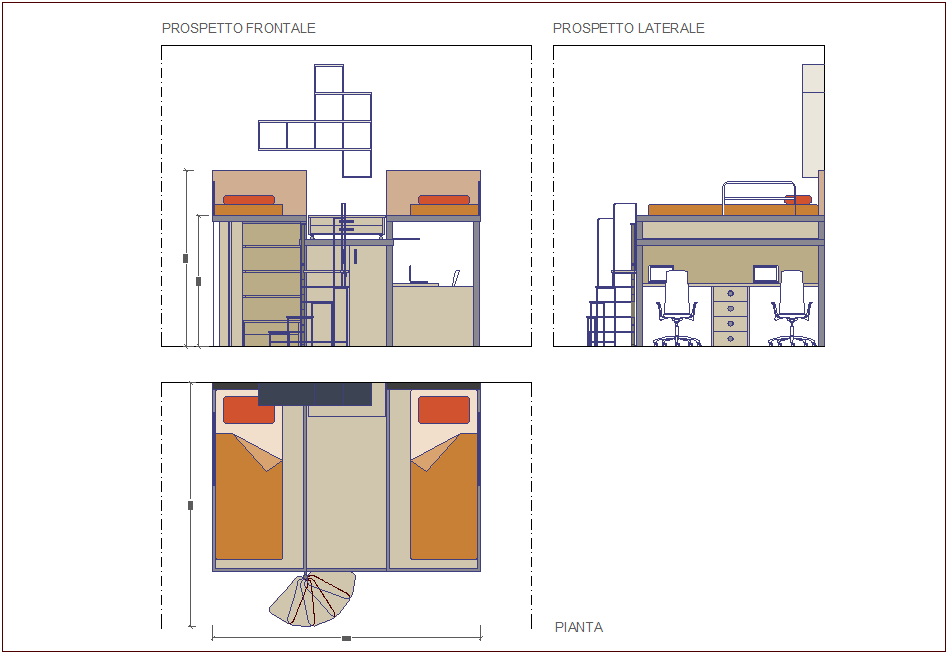 Double bed furniture plan,elevation and side view dwg file