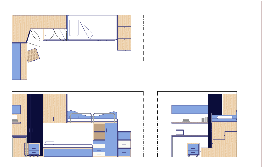 Plan,elevation and side view of double bed design with furniture view dwg file