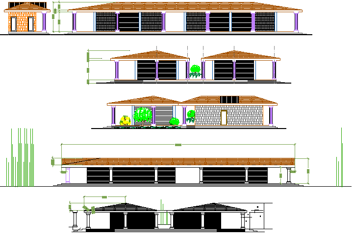 All sided elevation details of small city market dwg file