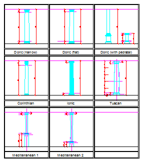 Here the Various types of Columns section design drawing like narrow column, flat column, with pedestal detail design drawing in this auto cad file.