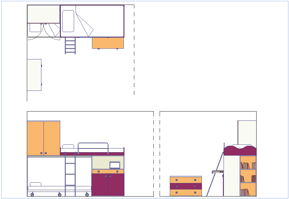 Plan,elevation and side view of bedroom dwg file in plan with view of bedroom view with bed view with ladle and view of elevation with bed and drawer and view of wheel and drawer and view of side view with view of cup board view with drawer and view of book on it.