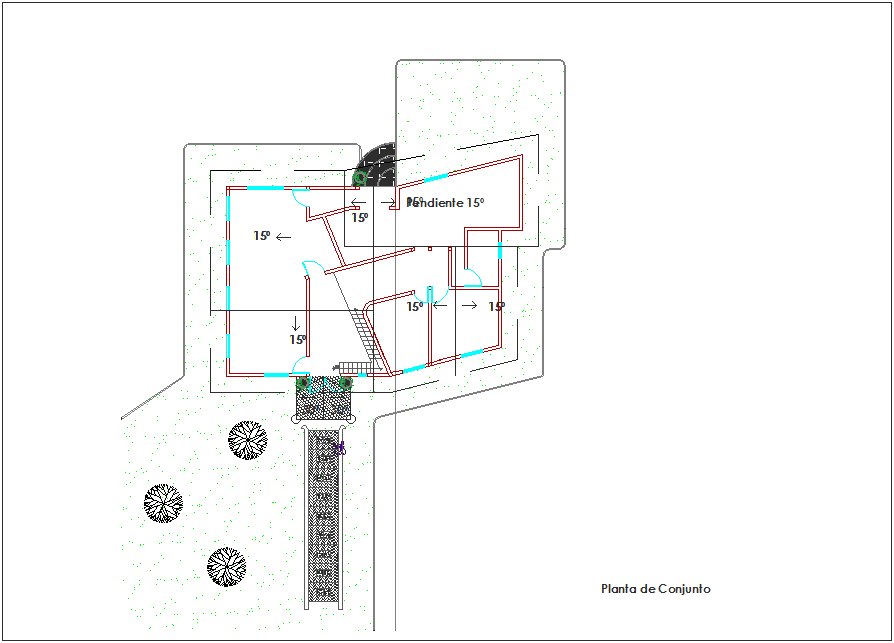 Set plan of office area dwg file in plan with view of wall,wall support and slop area view of office roof and wall and road area view with main dimension.