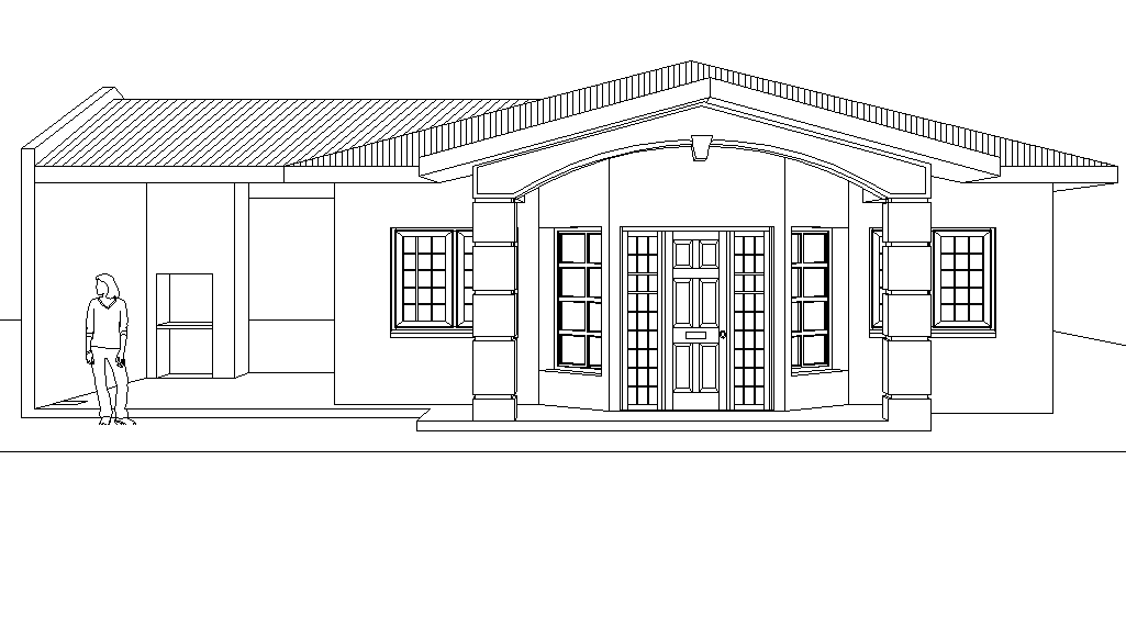 Front elevation home plan autocad file, furniture detail in door and window detail, column design detail, roof plan detail, etc.