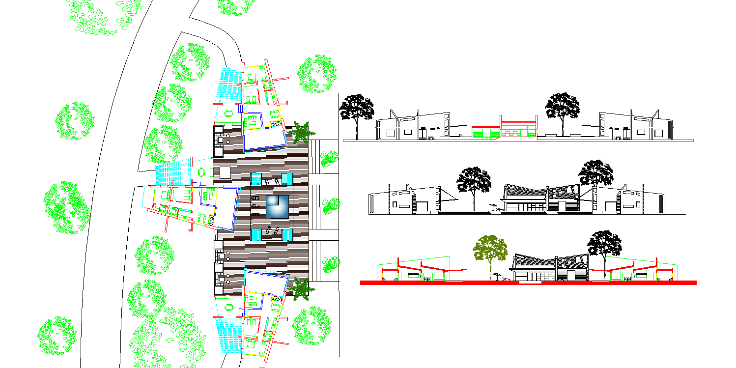 Three bungalows Plan DWG, Three bungalows Plan Download file, Three bungalows Plan detail. This drawing design draw in autocad format.