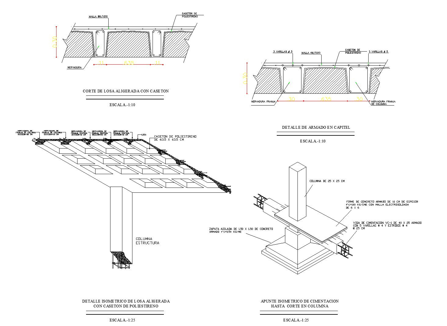 Foundation detailing with isometric drawing, elevation detail etc.