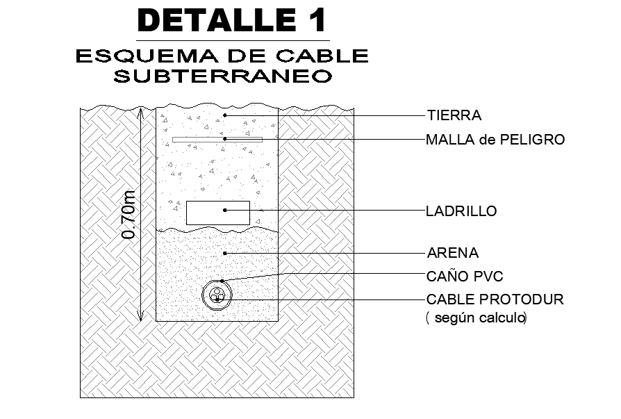 Underground cable scheme section plan autocad file, concert mortar detail, naming detail, dimension detail, etc.