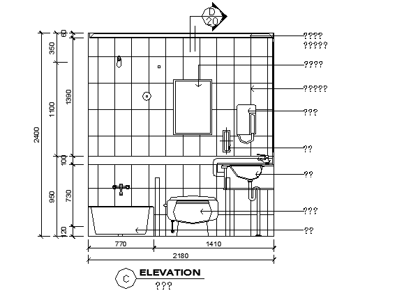 Bathroom plumbing sectional details, tiling details with wash basin and dimensions details, all are shown in auto cad format