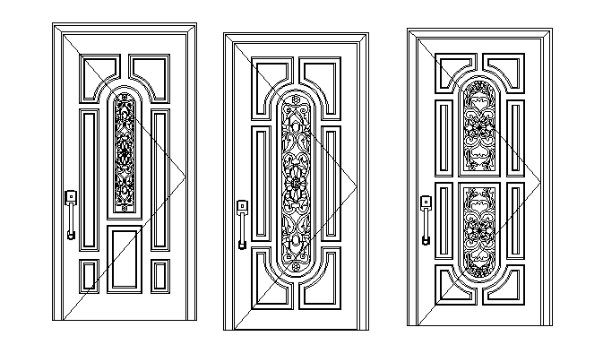 Various door designs detail dwg file,Door elevation details, front detailing of door, with floral design , and other details in auto cad format