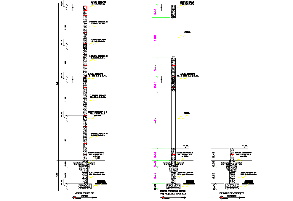 Wall section plan detail dwg file, dimension detail, naming detail, reinforcement detail, leveling detail, etc.