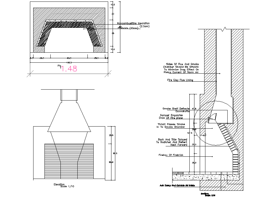 Machine core cutting plan and section detail dwg file, dimension detail, hatching detail, naming detail, etc.