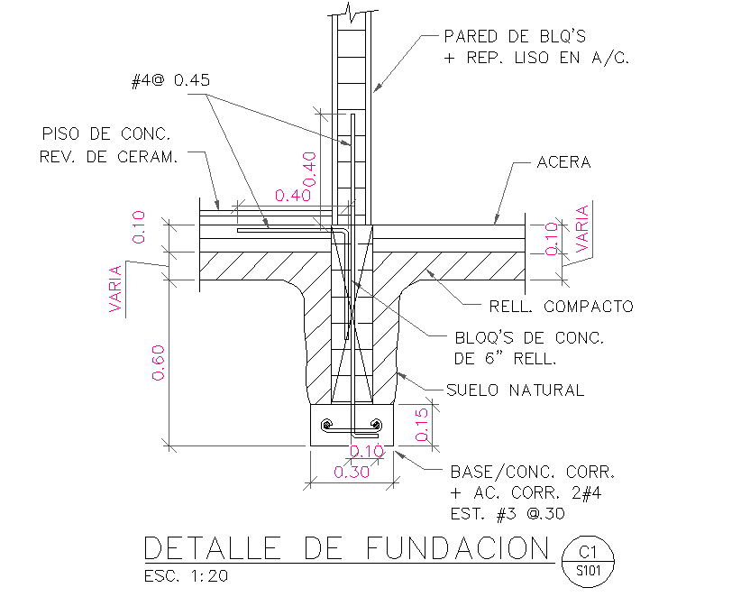 Foundation section plan detail layout file, dimension detail, naming detail, reinforcement detail, scale 1:20 detail, bolt nut detail, etc.