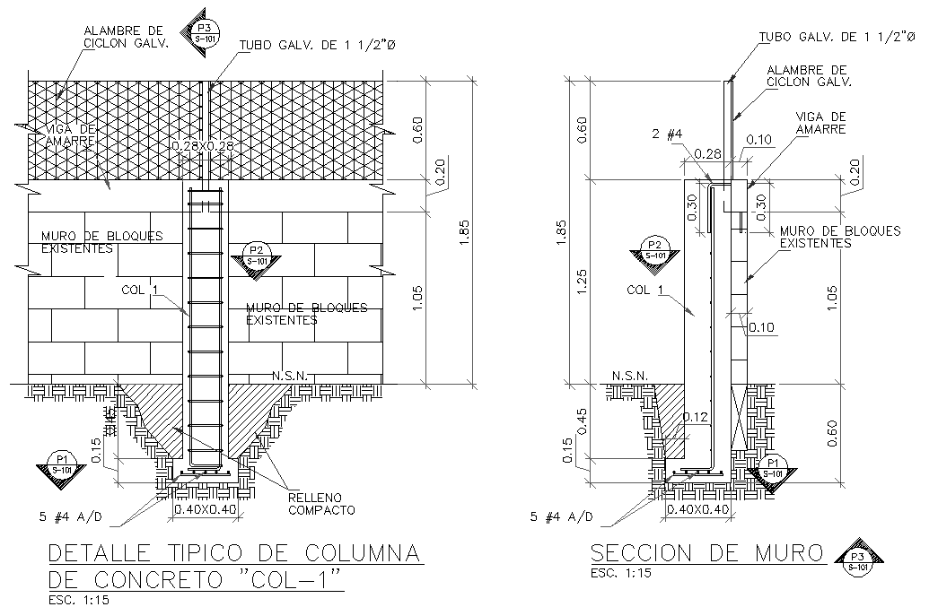 Detail column concert mortar detail dwg file, dimension detail, naming detail, reinforcement detail, hatching detail, etc.