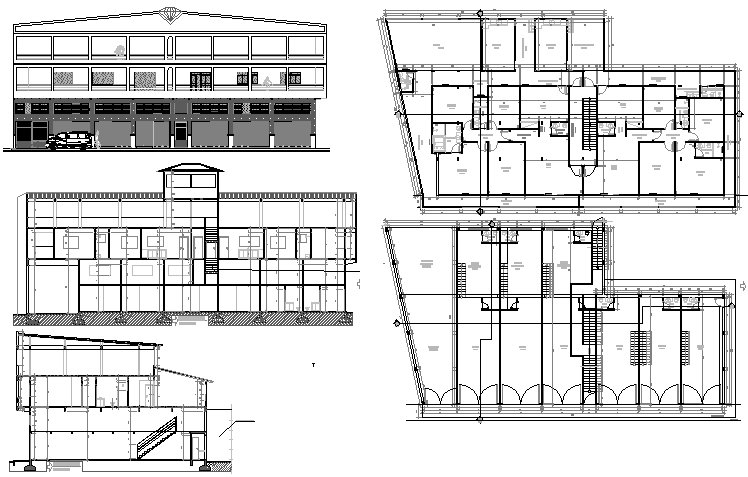 Departmental store architecture project that includes a detailed view of main elevation, main section, cut sectional view, flooring view, doors and windows view, staircase view, balcony view, layout plan details and much more of departmental store project.