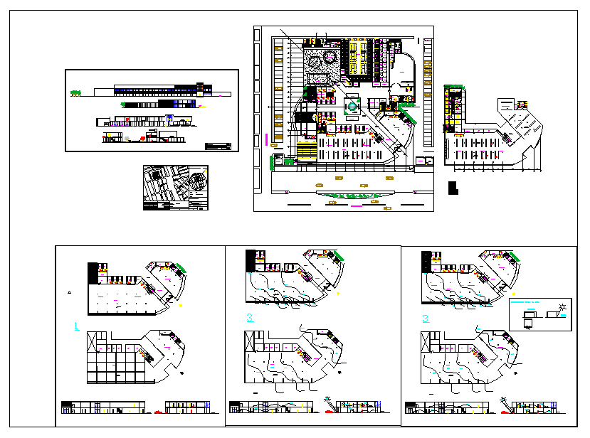 Commercial Complex Architecture Design DWG file, piso ceramic 50x50, sales modules, media, plan & Elevation , Key Plan Lay-out etc.