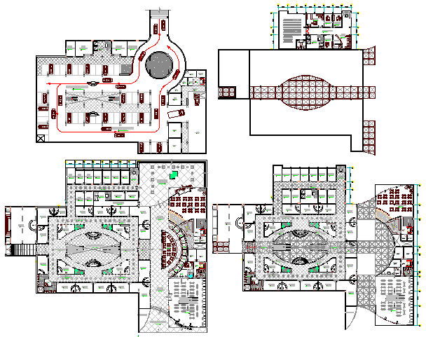 Floor plan layout details of multi-level shopping center dwg file