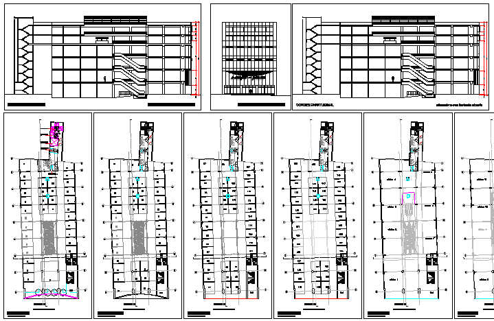 Shopping Mall DWG File with Floor Plan, Elevation, and Section Layout