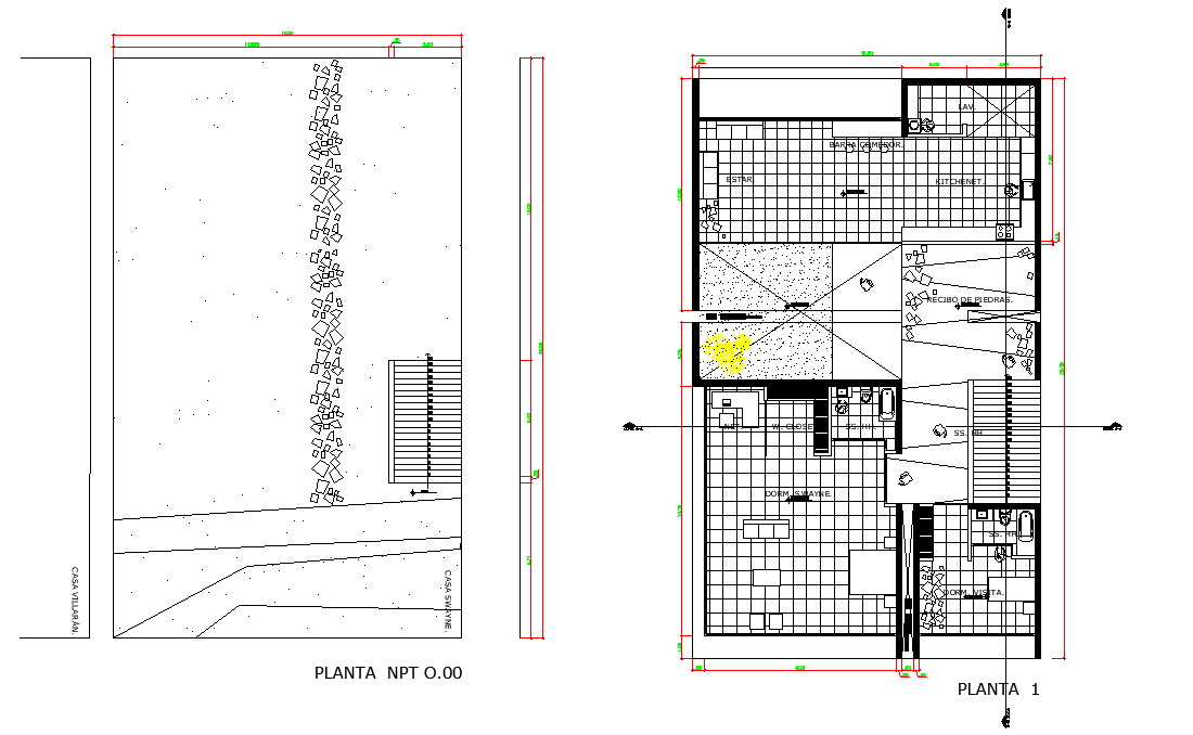 Beach house plan autocad file, section line detail, dimension detail, naming detail, furniture detail in door, window, table, chair and sofa detail, cut out detail, toilet detail, etc.
