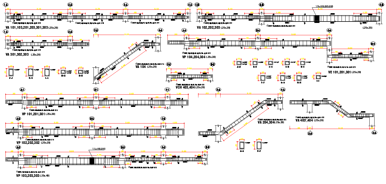 Beam section plan autocad file, centre lien plan detail, reinforcement detail, bolt nut detail, dimension detail, column section detail, etc.