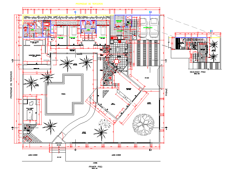 Residence house plan autocad file, dimension detail, naming detail, landscaping detail tree and plant detail, furniture detail in sofa, table, chair, table, door and window detail, hatching detail, etc.