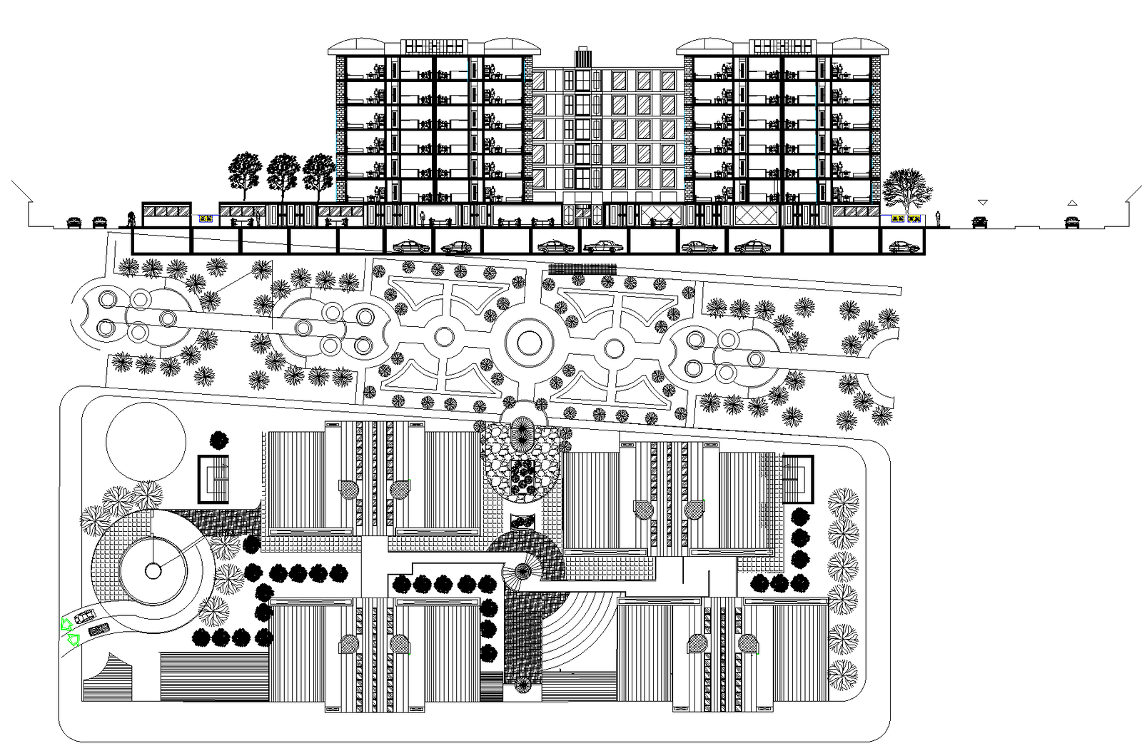 Project multi-family housing high-density plan. Plans including top view plan and front view plan in detail.