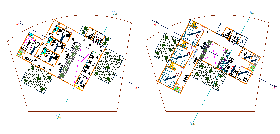 Health center culverts Lay-out detail. obstetrics, Pneumology, general medicine, internship, boarding women, etc.