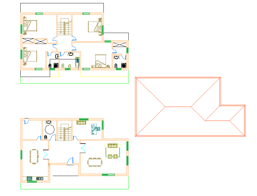 Plant housing plan autocad file, furniture detail in door, window, table, chair and sofa detail, cut out detail, ground floor to roof plan detail, etc.