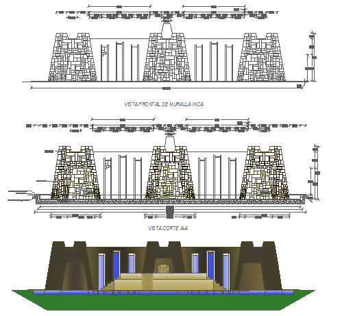 The architecture project of metro hyper market that includes a detailed view of front and back elevation view of monument details, 3d monument design and much more of market project.