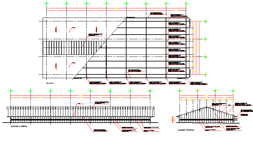 Roof and constructive details of shopping center that includes a detailed view roof construction view, wall construction, dimensions, measures, staircase construction and much more of shopping center construction.