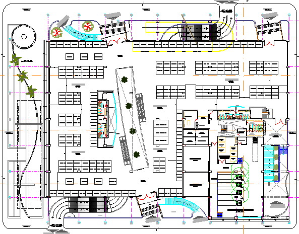 First floor layout plan details of super market dwg file