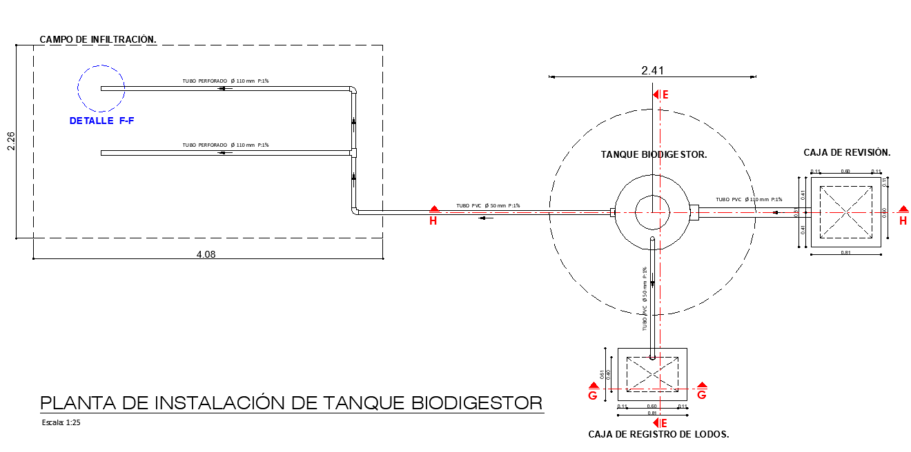 Installation infiltration layout plan detail dwg file, dimension detail, naming detail, hidden line detail, pipe line detail, cut out detail, scale1:25 detail, etc.