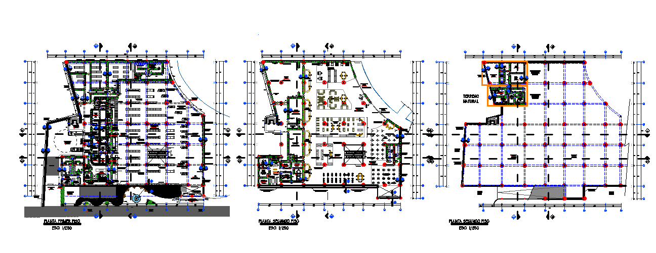 Multi specialist Hospital Design in DWG file. ceramic floor celima america series ivory color, high transit .40x.40, furniture for fruits and vegetables, camera fish and seafood, polished concrete floor with epoxy